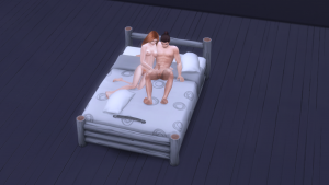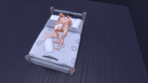 Eine sehr aufwendig gestaltete Animation – man sieht die Sims beim Kuscheln sogar atmen! Leider muss man zwischen den einzelnen Stages immer die Aktion wechseln, so dass man nicht einfach Nächste Animation wählen kann und sich so kein flüssiges Bild ergibt.
