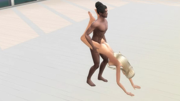 M fickt F von hinten in Schubkarren-Stellung.